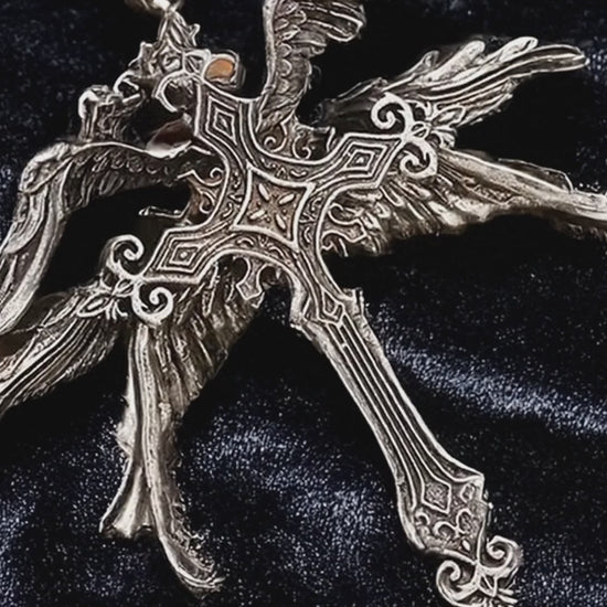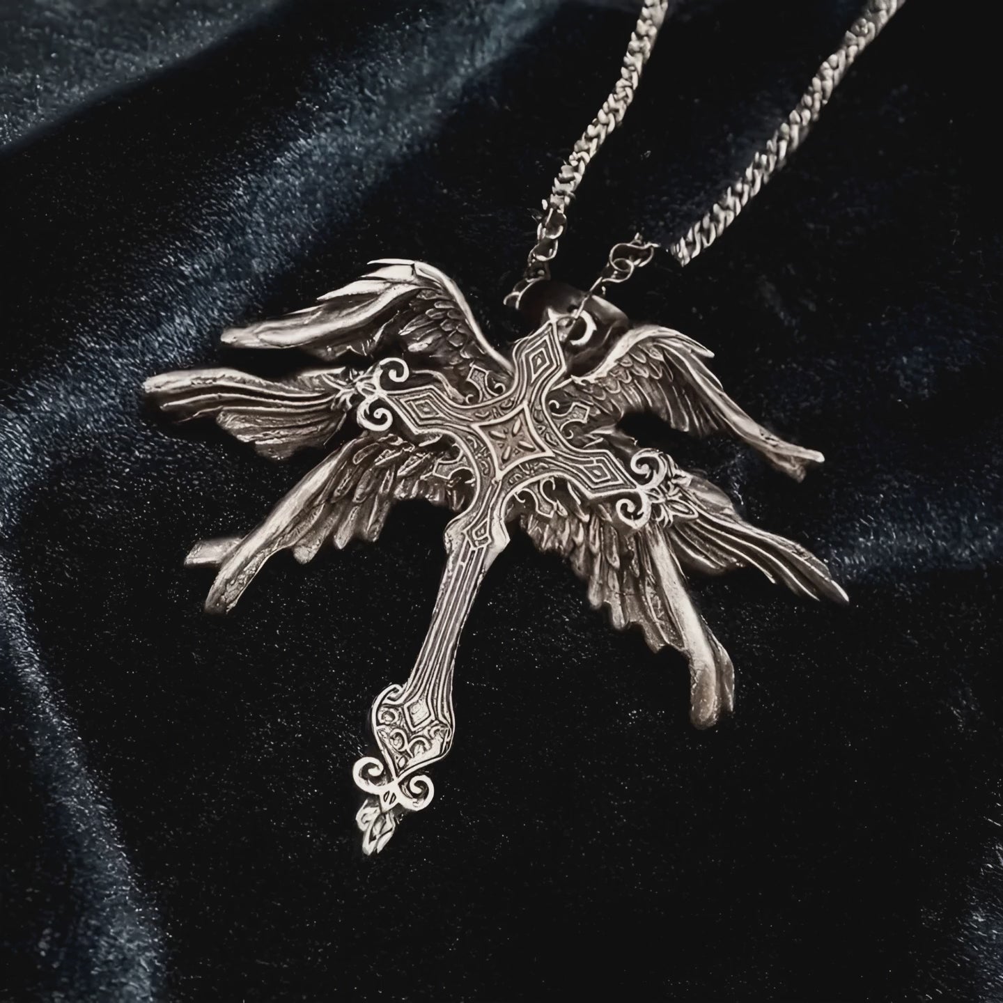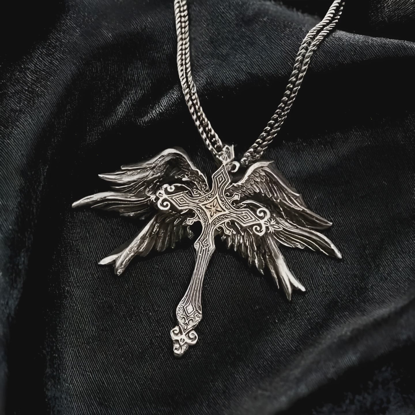 A symbol of rebellion, redemption, and raw edge — the Fallen Wings necklace is forged in dark vintage metal with a winged cross design that tells a story of angels who don’t follow rules. 🖤 With fine feather detailing and a bold asymmetrical structure, this heavy pendant feels more like an artifact than an accessory.